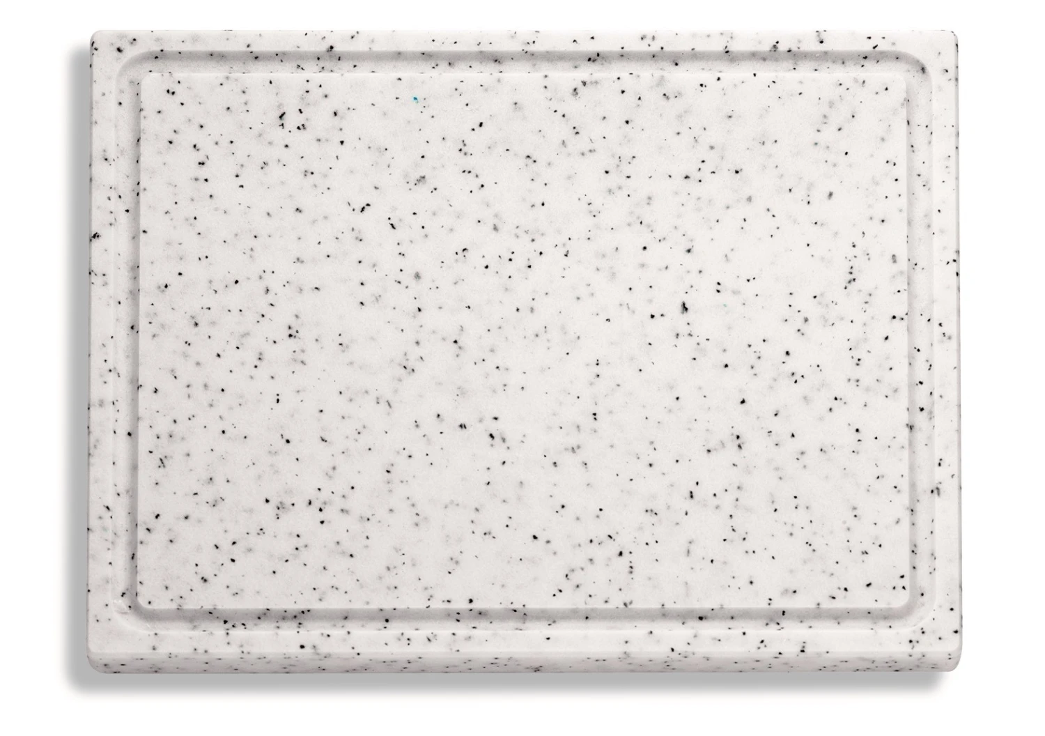 This cutting board is made of a high-quality synthetic material that is durable and resistance. Its surface has a beautiful white marbled effect that makes this board fit perfectly with almost every type of kitchen’s décor. It must be noted that this cutting board complies with the HACCP regulations, meaning that it is a kitchen accessory that respects hygiene standards and is safe to use even in professional kitchens.