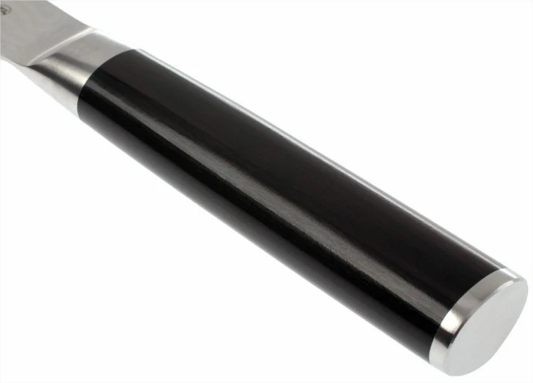 Equally important as the blade, the handle has a typical Japanese construction that consists in a “D” shaped design that adapts perfectly to your hand. It is made of pakka, which is material formed from the combination of wood and resin. This material is known for being super durable and ultra hygienic: two characteristics of great value in every kitchen!